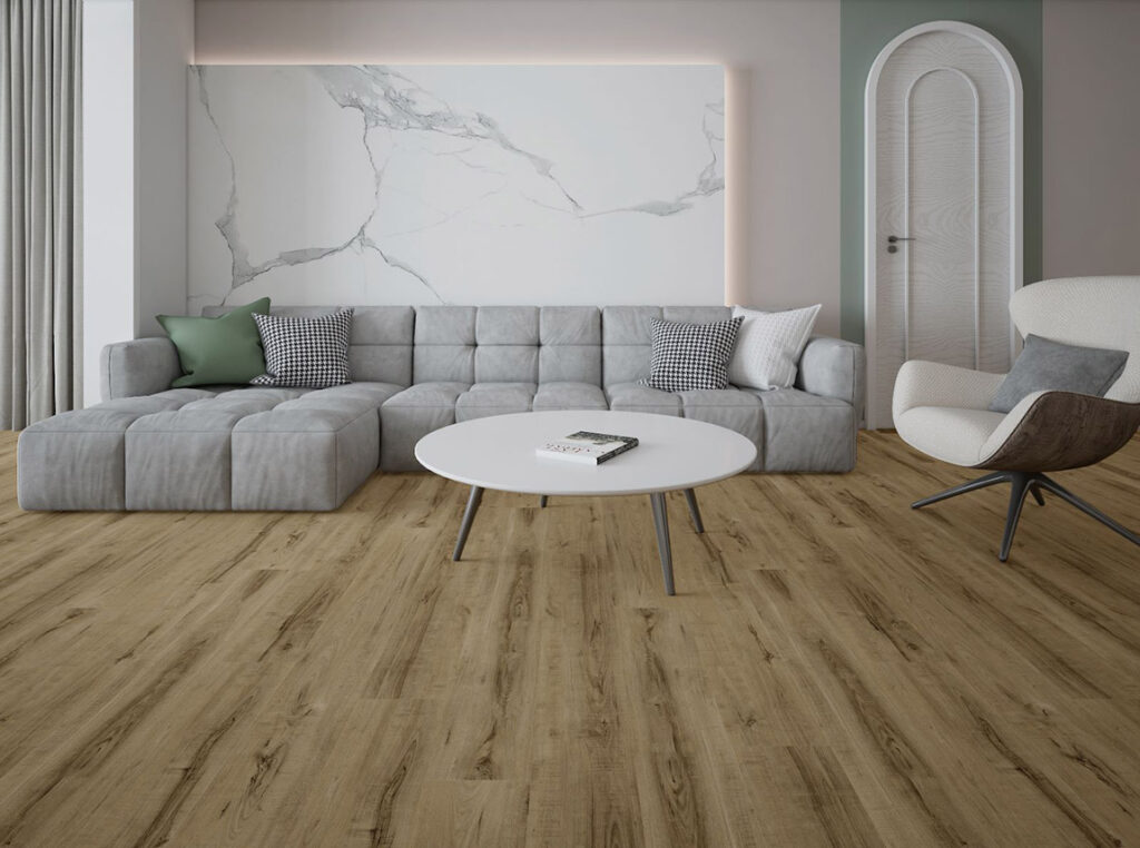Vinilna plošča je iz kompozita kamna in plastike (SPC) debeline 5,5 mm in 100% vodoodporna.